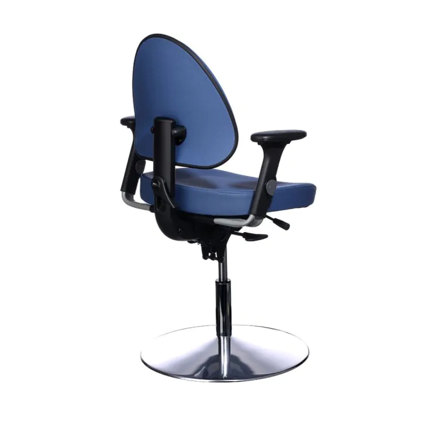 Stor rygg og sete i trekk som kan vaskes og sprites av. Justerbar i høyden, setevipp og rygg Justerbare armlener Tallerkenfot som gir god plass til føttene Sittehøyde 51 – 66 cm