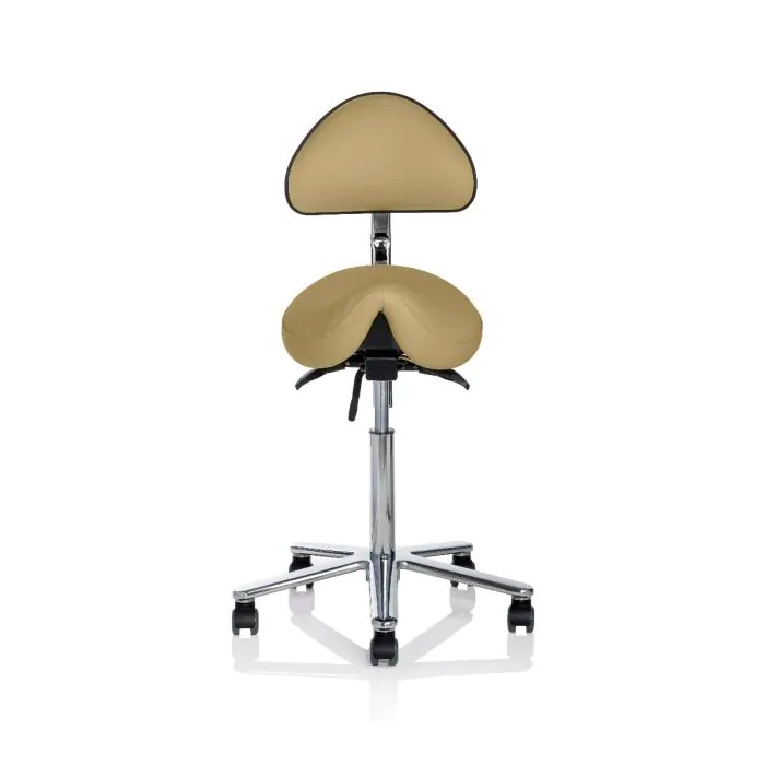 På en sadelstol får du mulighet til å sitte i den ettertraktede rytterstillingen. Det betyr at du sitter i en mer oppreist stilling som gir deg en god og avslappet holdning. Lårene peker ca. 45 grader nedover og føttene hviler avslappet på gulvet. Vanskelige arbeidsstillinger ved f.eks. kirurgi, ved å trekke ut tenner, se på røntgenbilder o.s.v. blir også lettere på grunn av den friere og mer dynamiske måten å sitte på. En Floor-Tec sadelstol gir deg mulighet for å styrke ryggen mens du arbeider.
